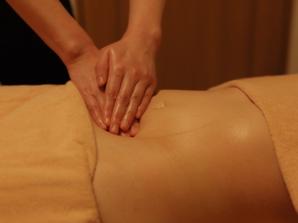 やさしいタッチでお腹まわりを丁寧にケアしていくことで、
